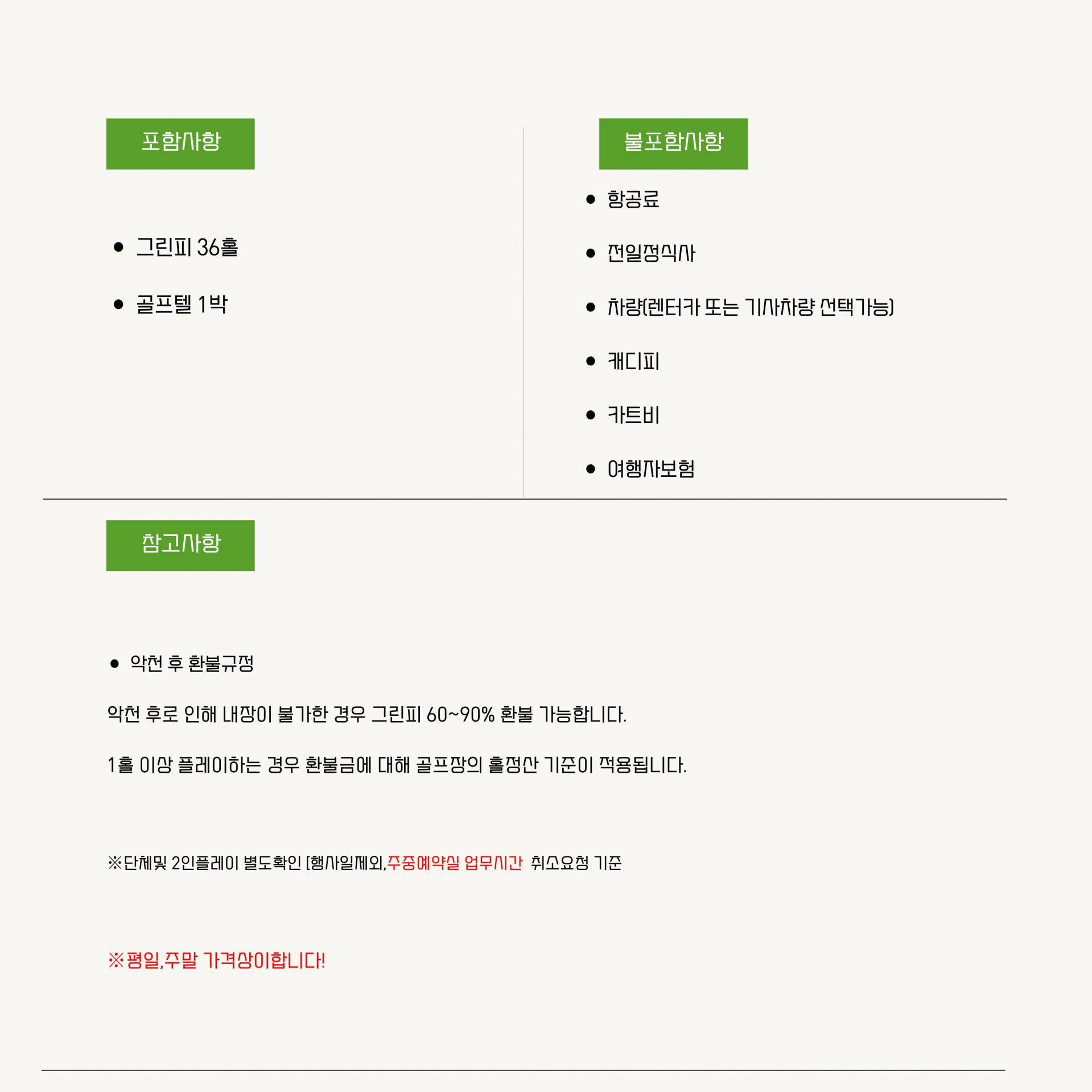 [주중, 주말 금액 변동사항 있음]