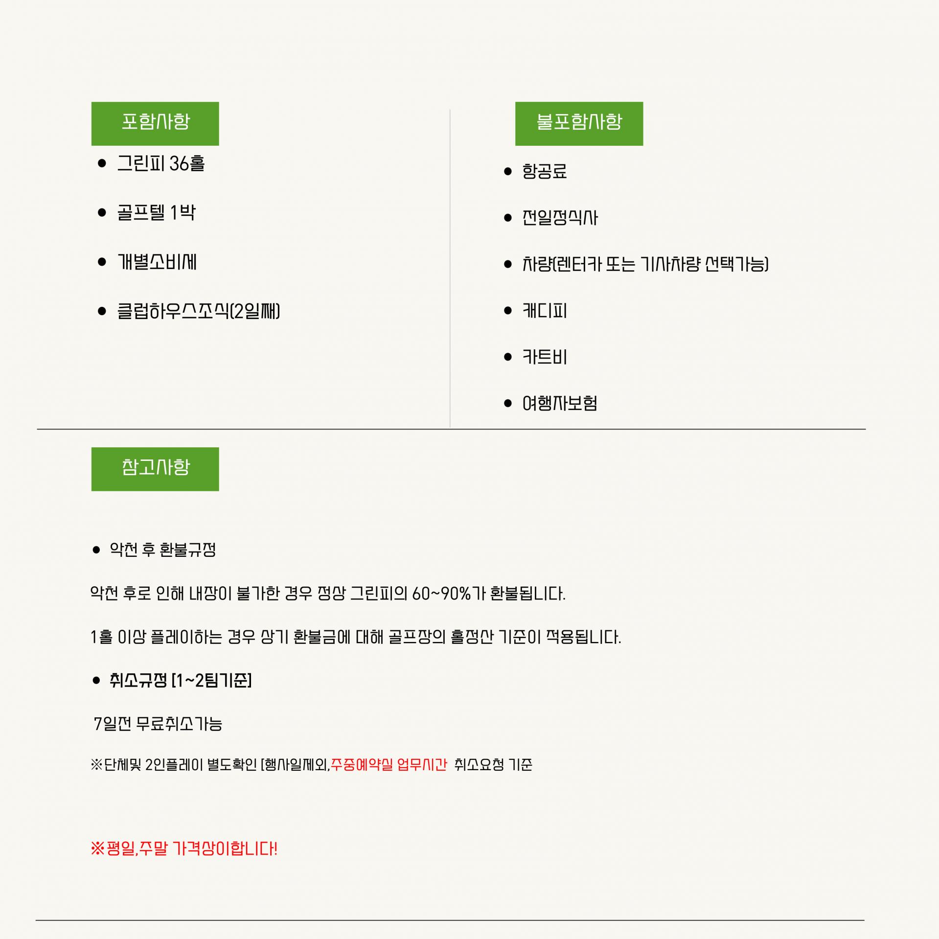 [주중, 주말 금액 변동사항 있음]